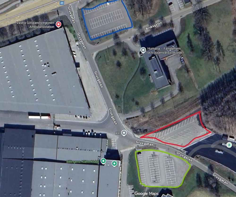 Vi har fått information om att parkeringen på ytan som är rödmarkerad på bilden kommer att stängas av.